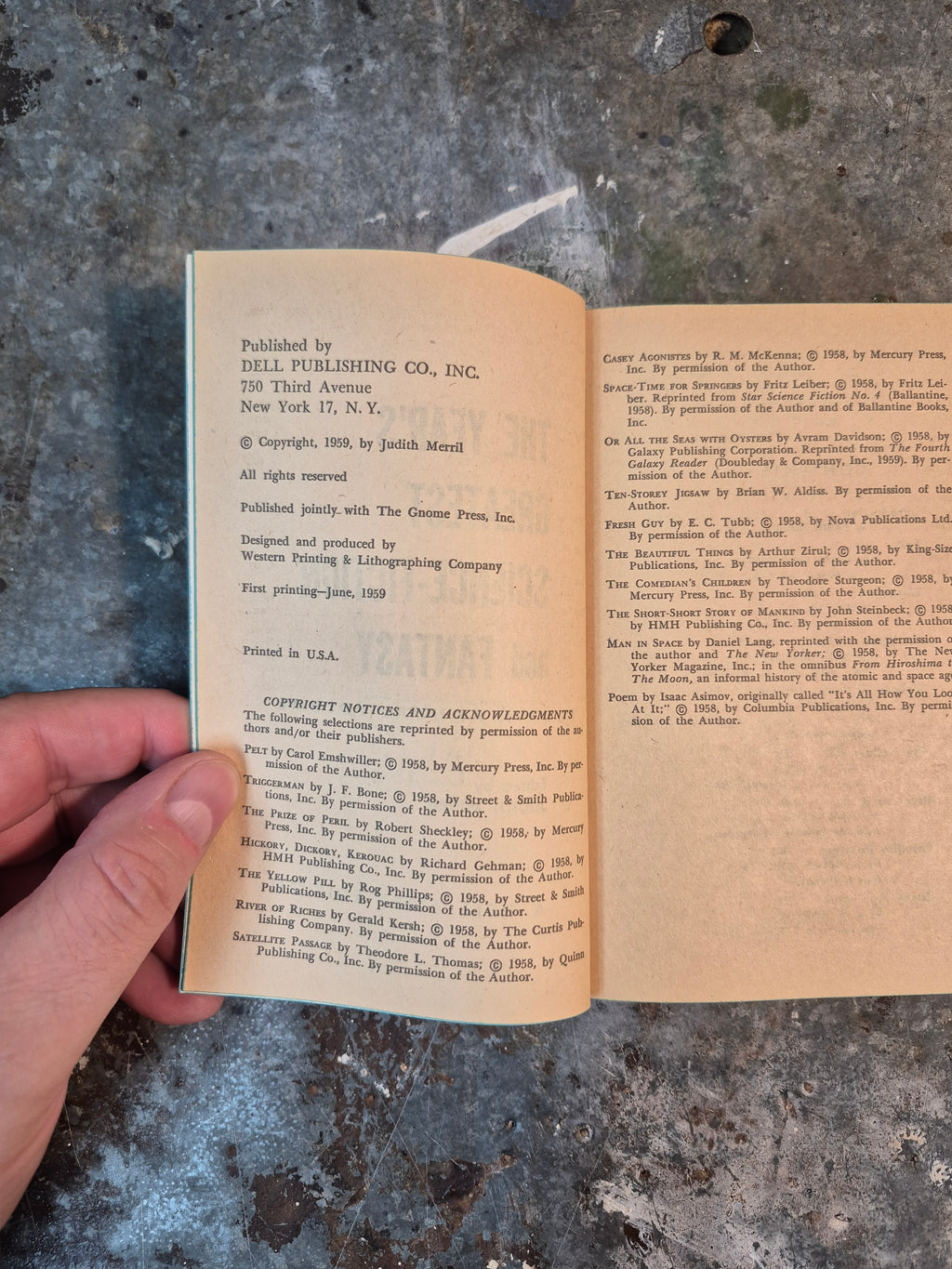 Late 50s collection edited by Judith Merril, in good condition with minor wear and tanning.