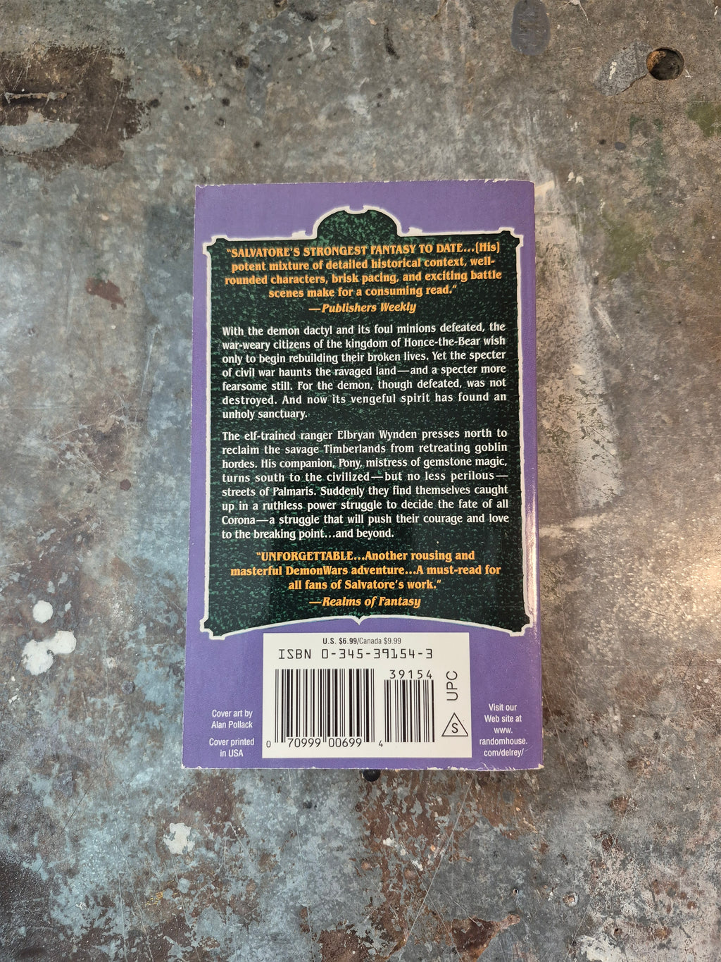 Demon Wars novel by R. A. Salvatore, in great condition with only minor wear and tanning.