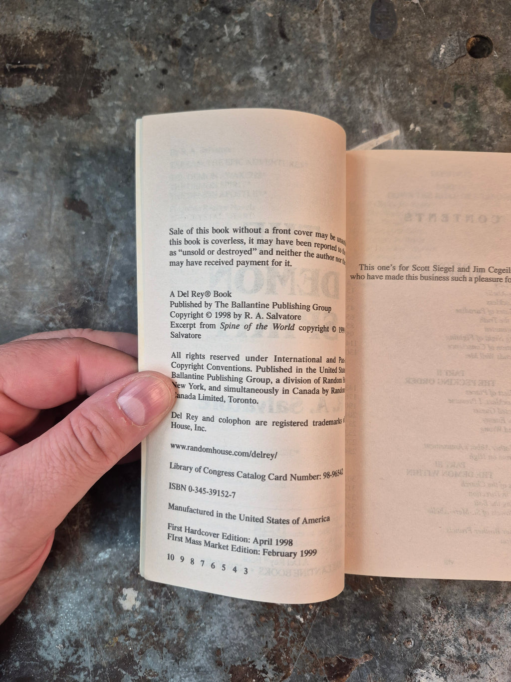 Demon Wars novel by R. A. Salvatore, in great condition with only minor wear and tanning.