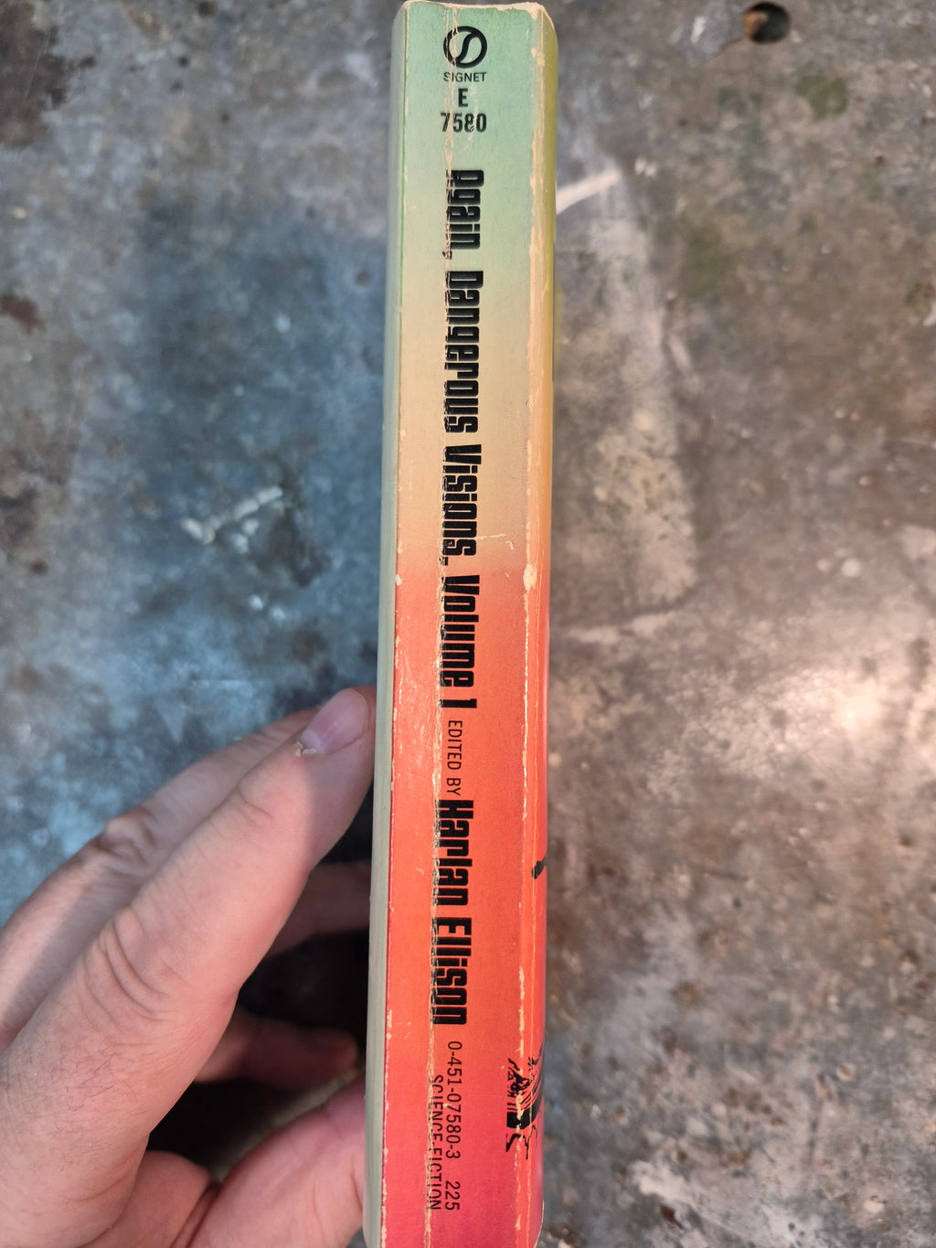 Early 70s collection edited by Harlan Ellison, in good condition. There is some spine creasing/curving, but the covers and pages are bright and clean.