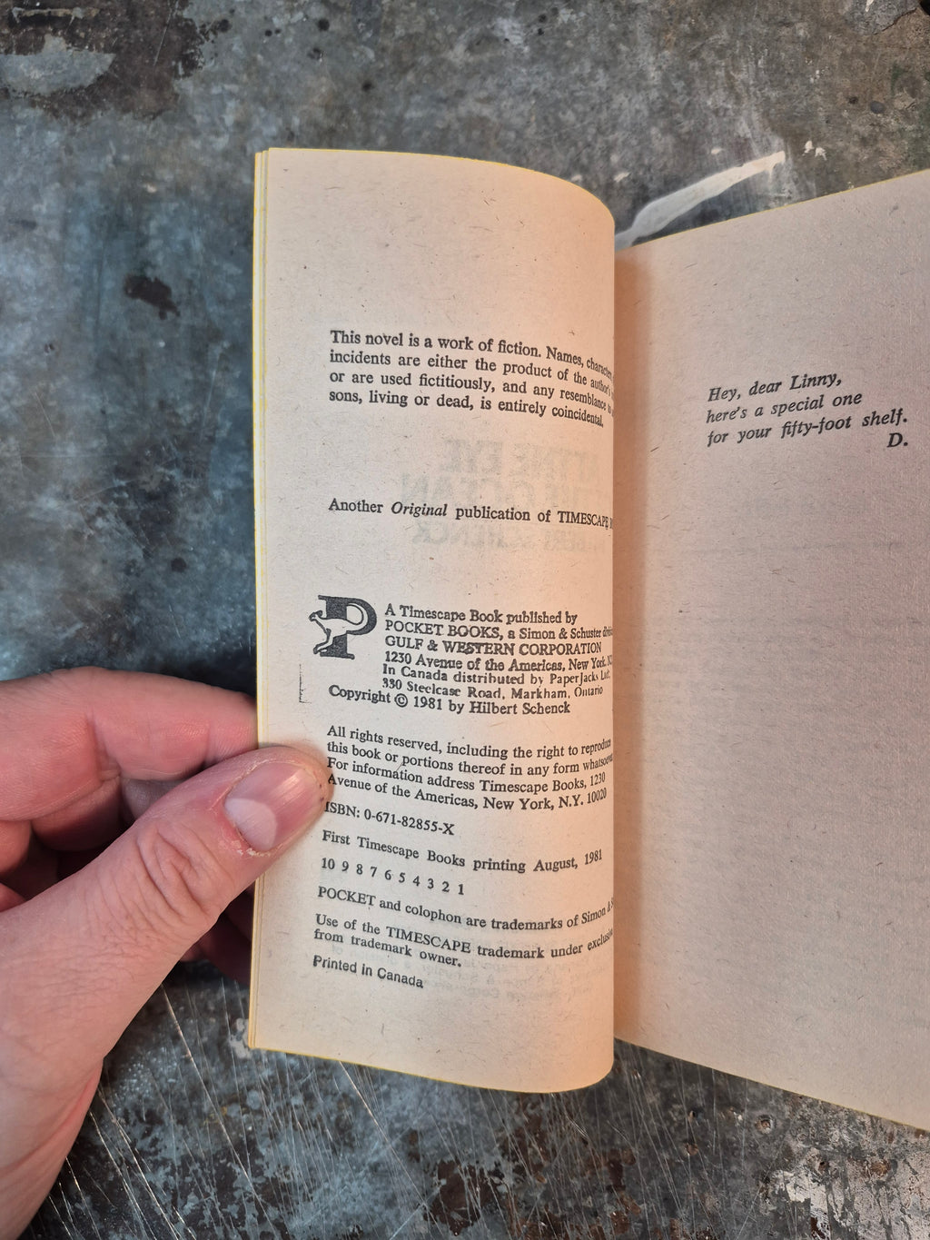 Early 80s Timescape edition of the novel by Hilbert Schenck, in good condition with minor wear and tanning.