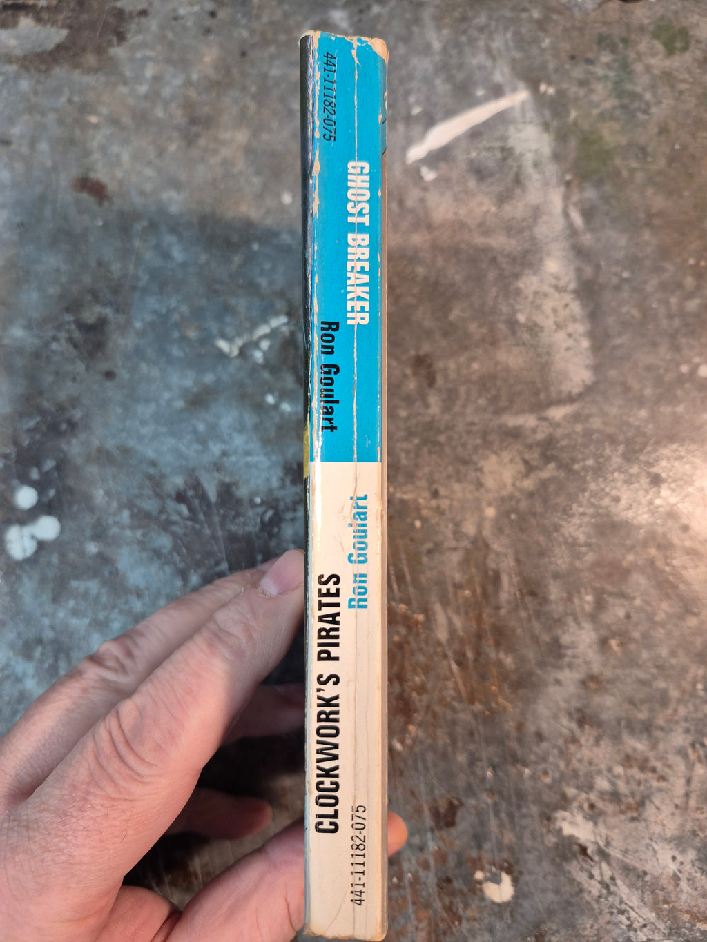 Early 70s Ace Double edition of the novels by Ron Goulart, in decent condition with minor wear and tanning. Solid but with notable wear and scuffing. Slight spine lean. Rare Ace Double. 11182.