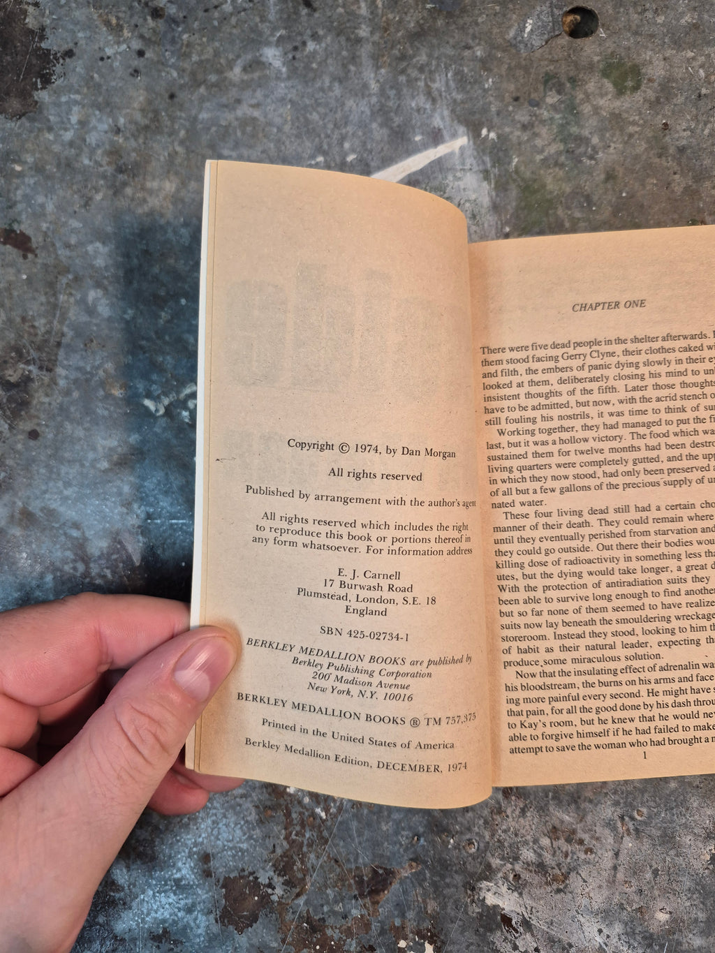 Early 70s novel by Dan Morgan, in good condition with minor wear and tanning.