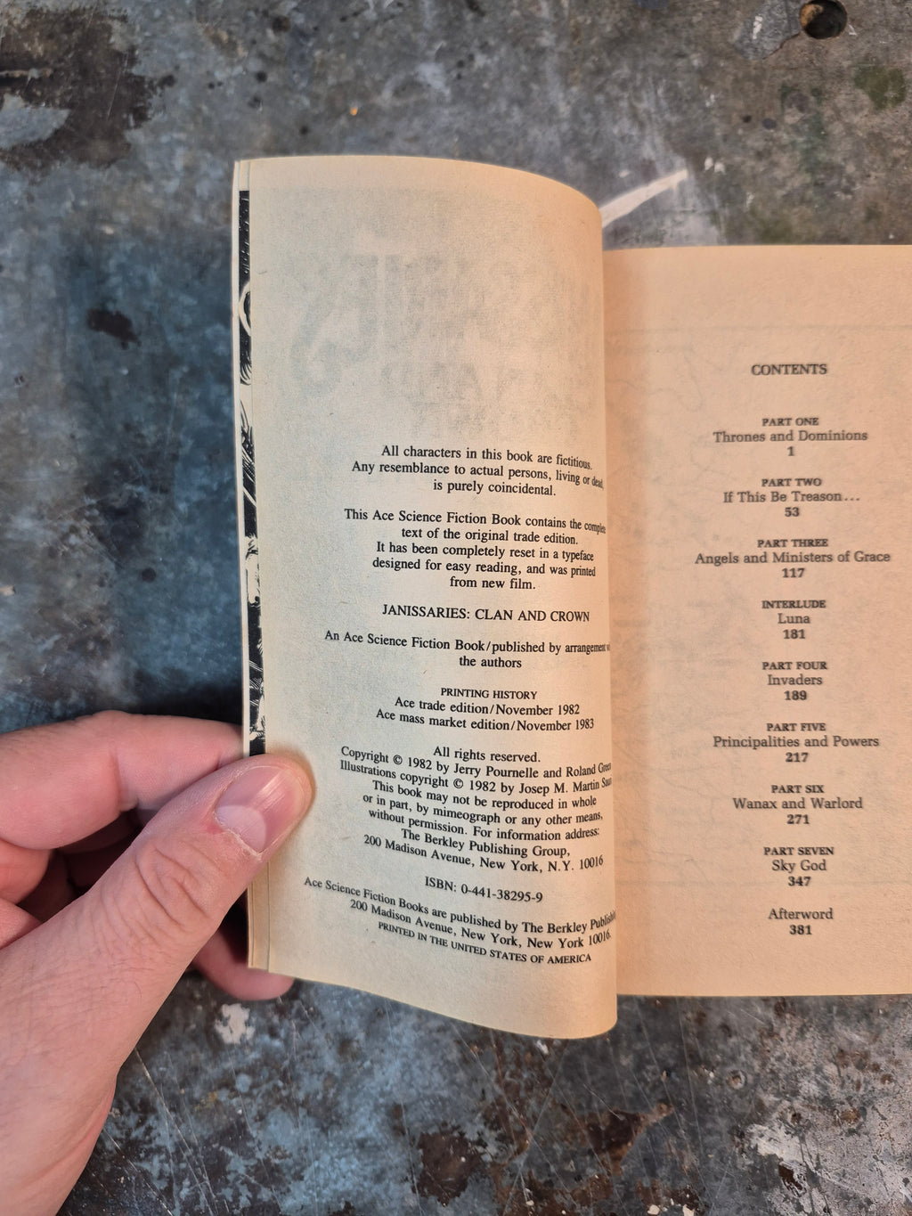Mid 80s heavily illustrated edition of the novel by Jerry Pournelle, in good condition with minor wear and tanning.