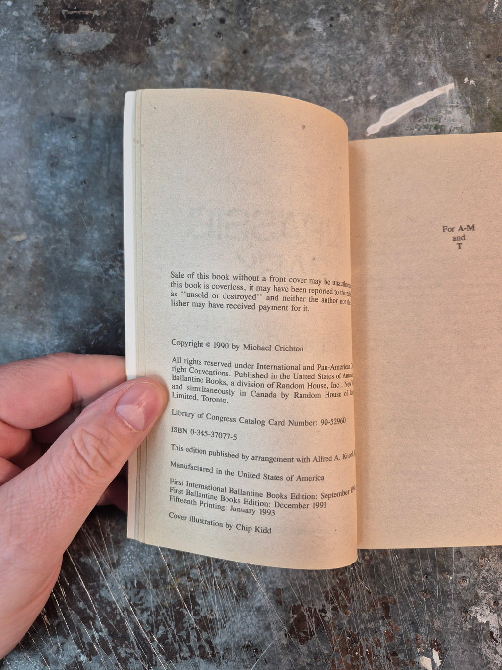 Early 90s printing of the novel by Michael Crichton, in good condition with minor wear and tanning.