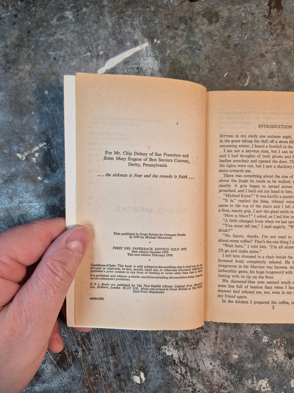 Early 70s edition of the novel by Michael Moorcock, in great condition with minor wear and tanning.