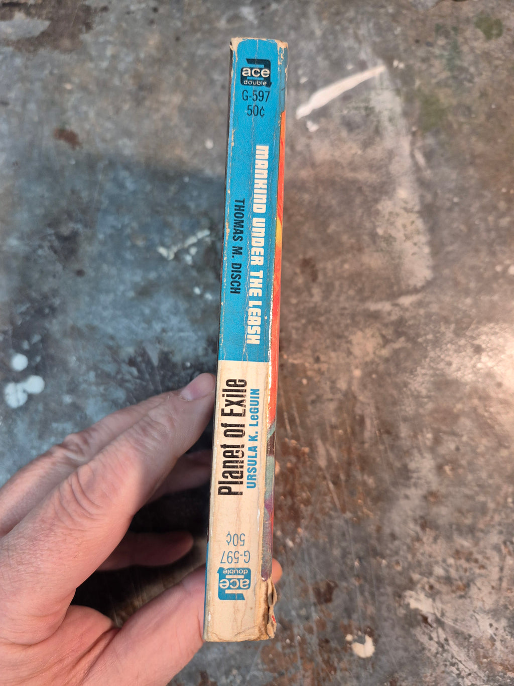 Late 60s Ace Double edition of the novels by Ursula K. Le Guin and Thomas M. Disch, in decent condition with minor wear and tanning. Solid but with some scuffs around the spine and a name written in the front. G-597.