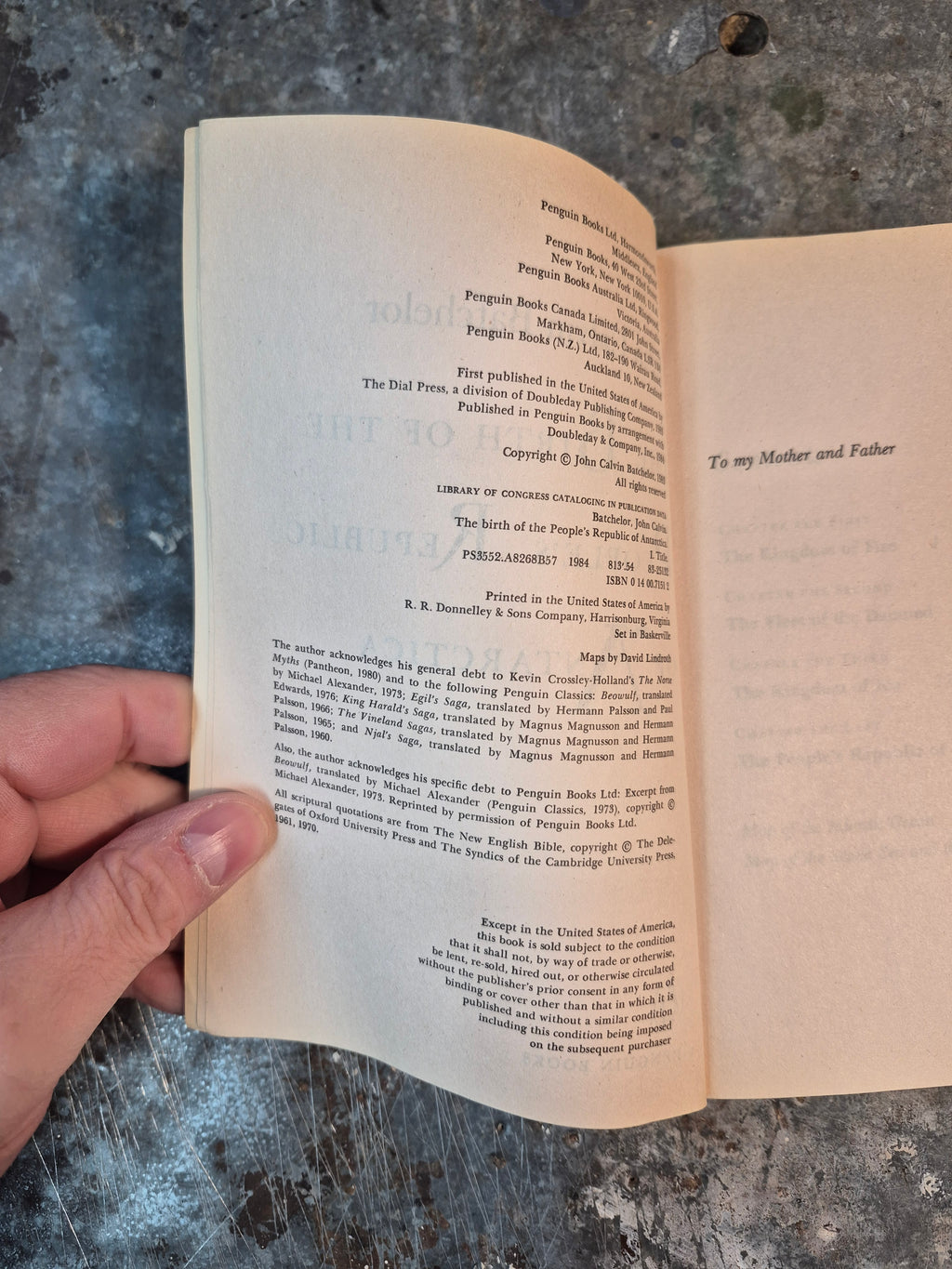 Mid 80s edition of the novel by John Calvin Batchelor, in good condition with minor wear and tanning.