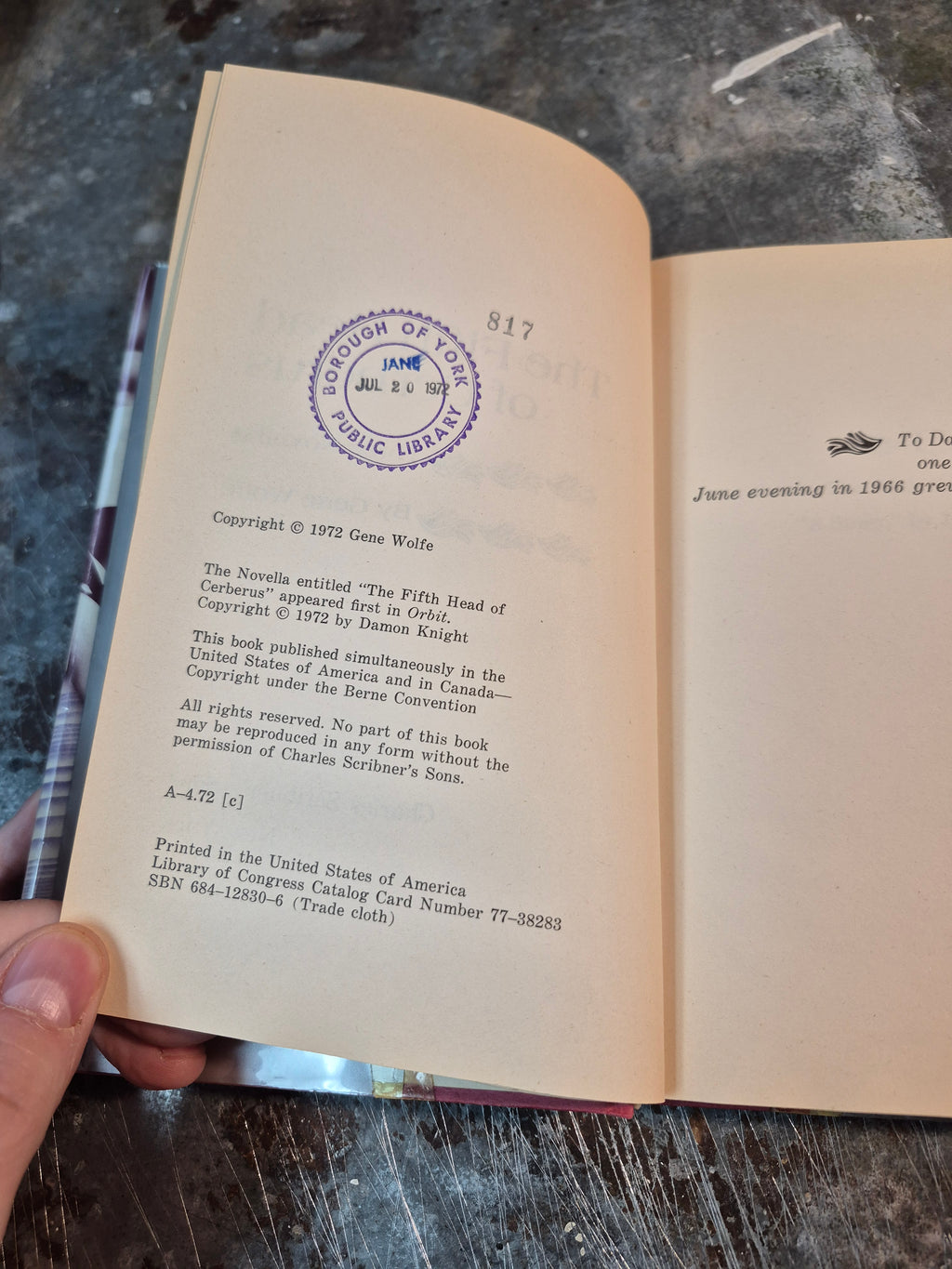 Early 70s true first hardcover edition by Gene Wolfe, in ex-library condition with typical ex-library wear and tanning. Slight spine lean. Price clipped, in protective mylar.