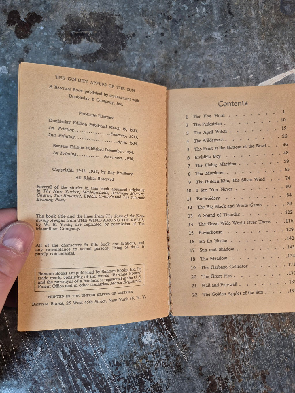 Mid 50s edition of the collection by Ray Bradbury, in decent condition with minor wear and tanning. First few and last few pages beginning to come loose. Price reduced accordingly.