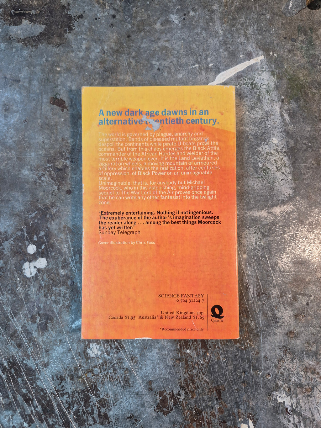 Mid 70s Quartet edition of the novel by Michael Moorcock, in good condition with minor wear and tanning. White splotches on the cover are material damage.
