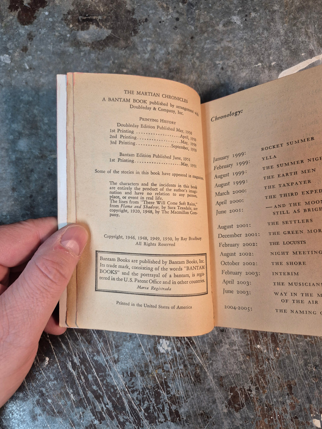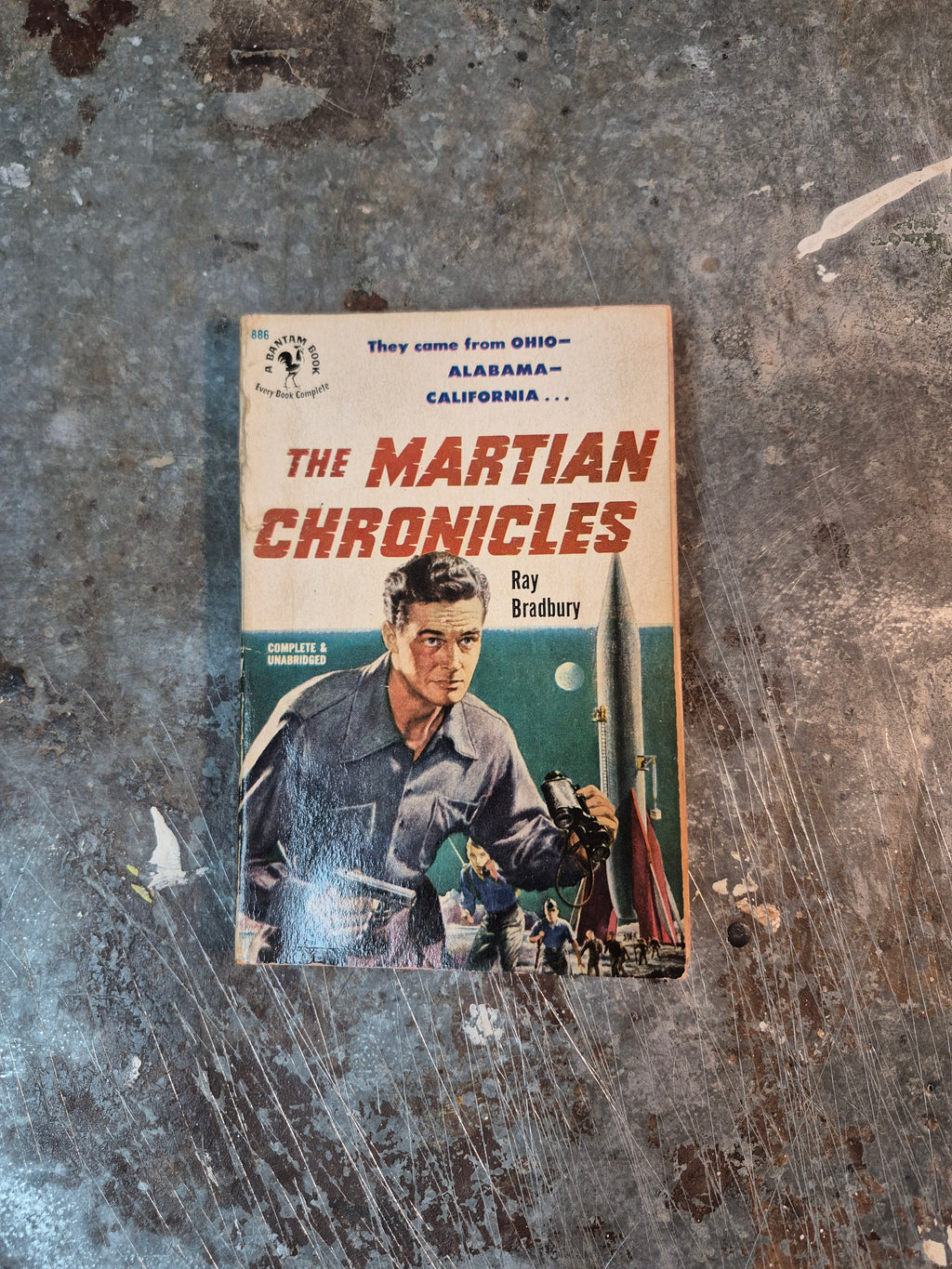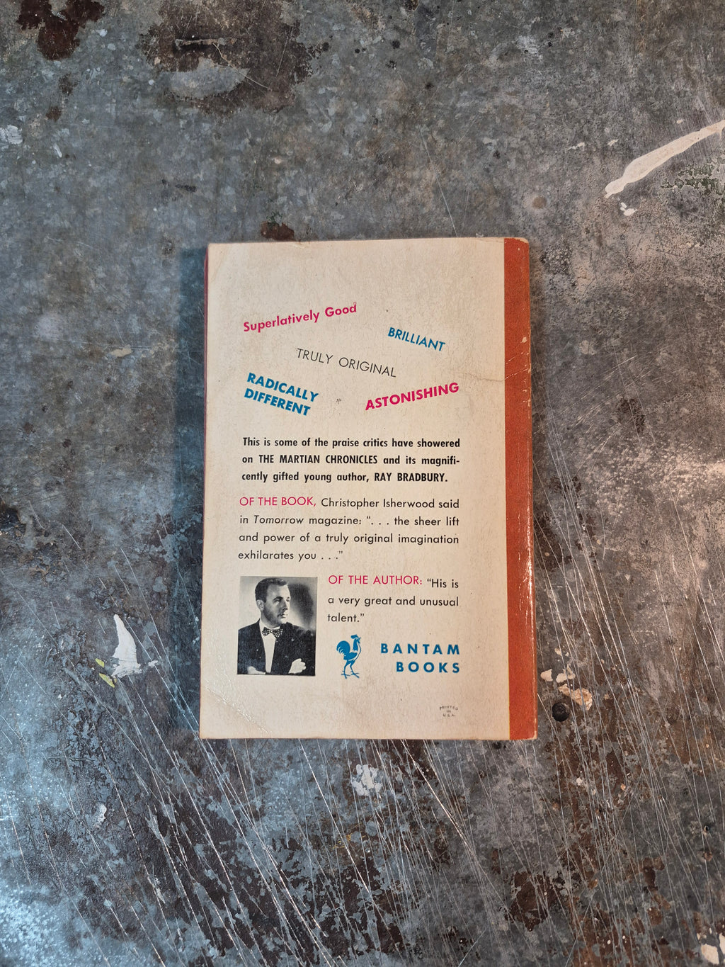 Early 50s edition of the classic novel by Ray Bradbury, in rough-but-solid condition with notable wear and tanning. Could use some repairing, price reduced accordingly.