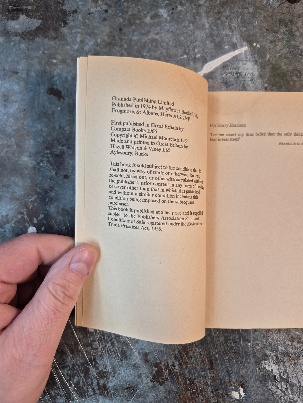 Mid 70s Mayflower edition of the novel by Michael Moorcock, in good condition with minor wear and tanning.