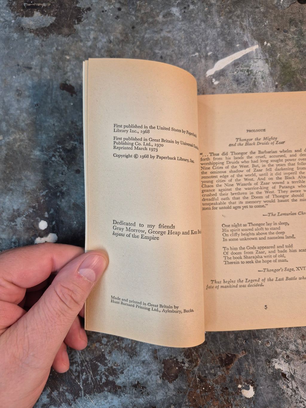 Early 70s Thongor novel by Lin Carter, in good condition with minor wear and tanning.