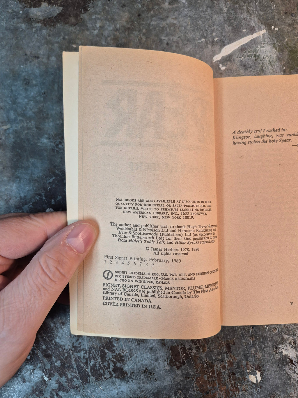 Early 80s Occult/Horror novel by James Herbert, in good condition with minor wear and tanning.