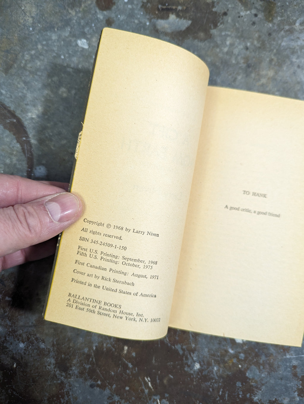 Mid 70s edition of the novel by Larry Niven, in great condition with mild wear and tanning.