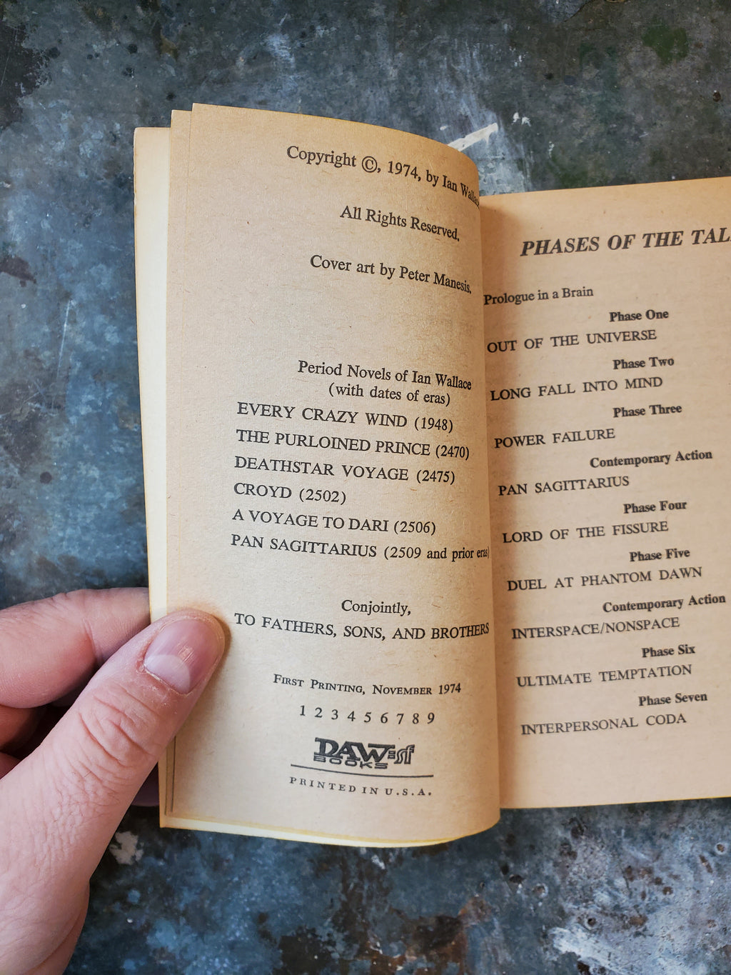 Early 70s Daw novel by Ian Wallace, in great condition with mild wear and tanning.
