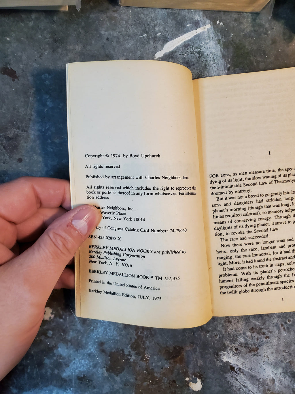 Mid 70s novel by John Boyd, in good condition with minor wear and tanning.