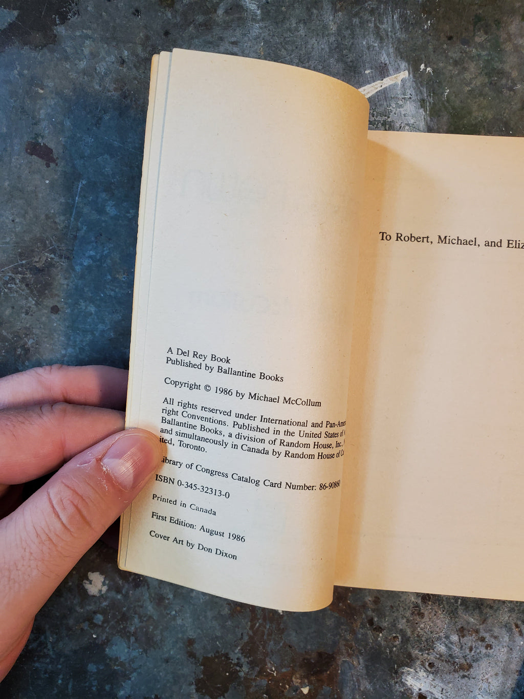 Mid 80s edition of the novel by Michael McCollum, in good condition with minor wear and tanning.