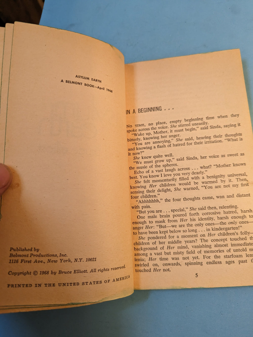 Late 60s novel by Bruce Elliott, in good condition. Minor wear, creasing and a slight old water stain on the top of some pages.