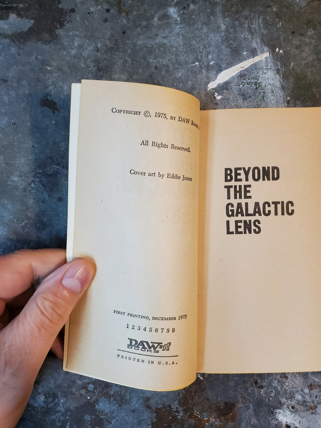 Mid 70s Daw edition of the novel by Gregory Kern, in great condition with mild wear.
