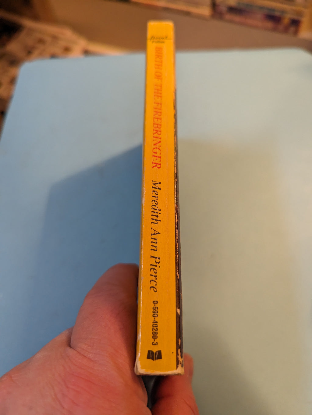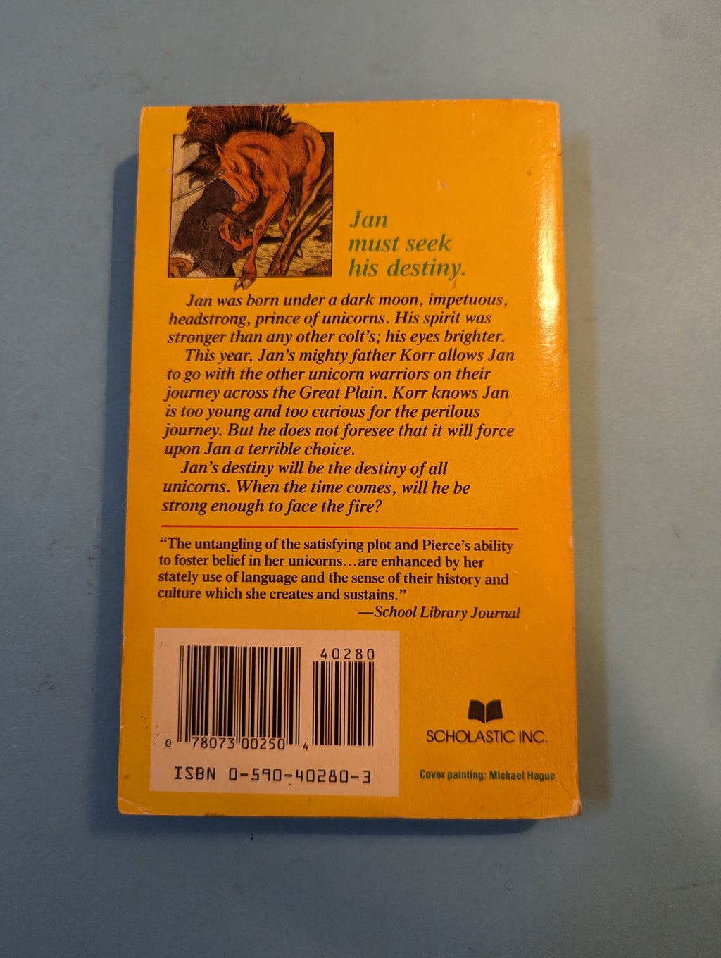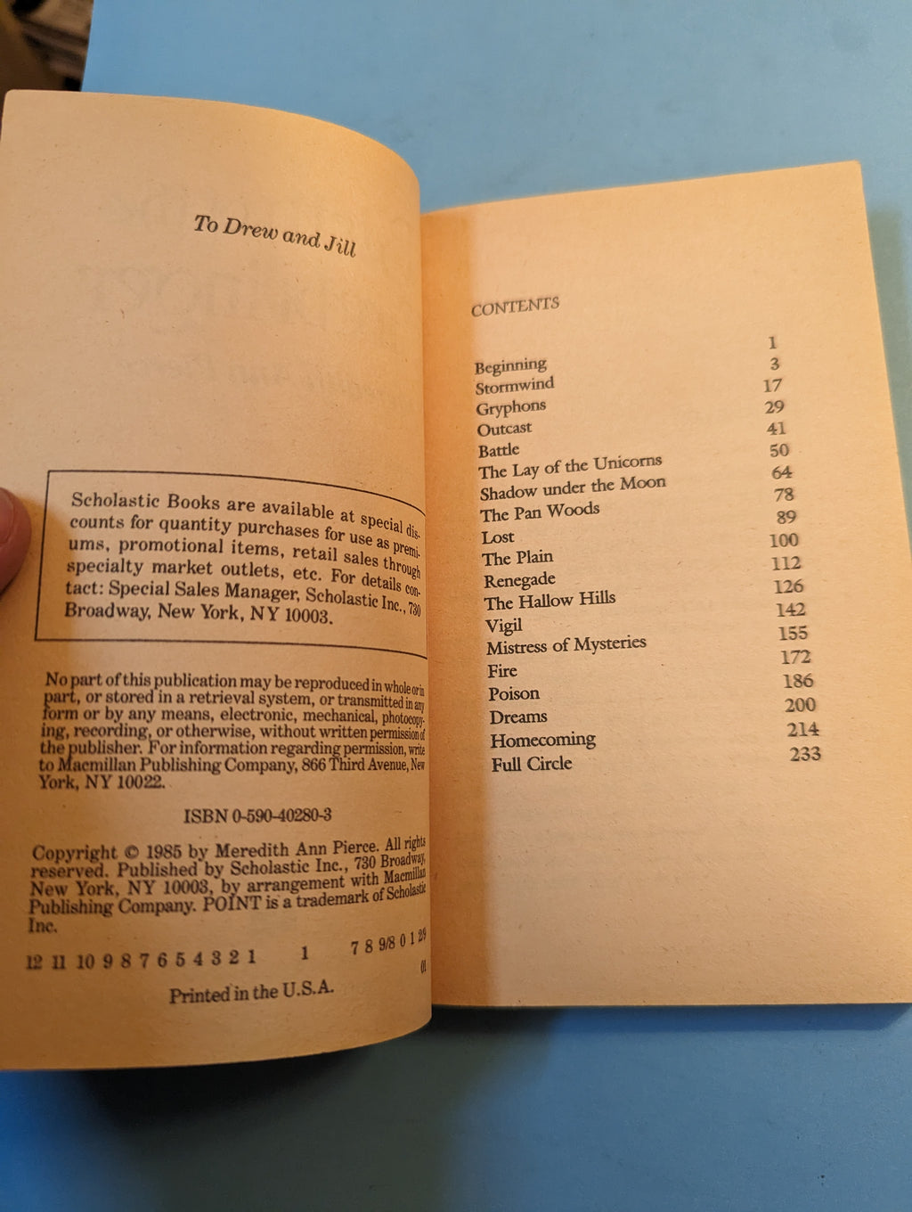 Late 80s Scholastic fantasy novel fby Meredith Ann Pierce, in decent condition showing only mild wear.