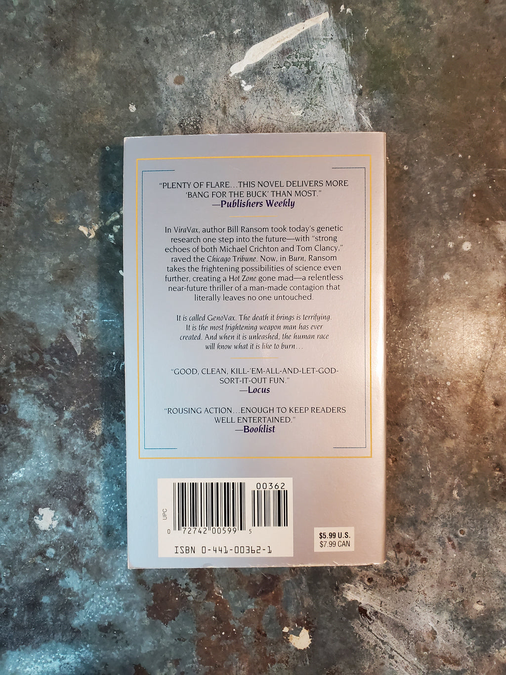Mid 90s Sci Fi novel by Bill Ransom, in good condition with mild wear and tanning.