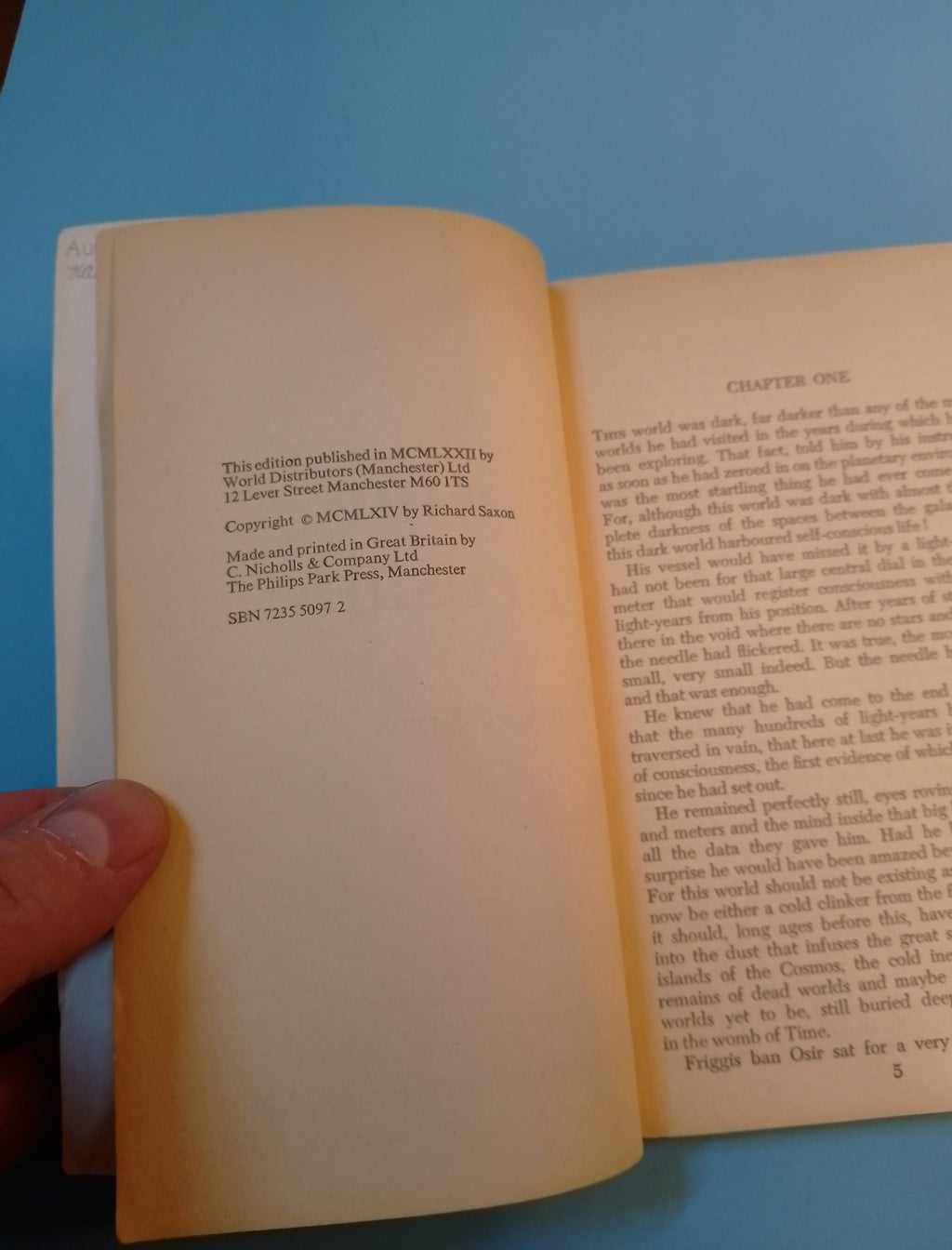Mid 60s Sci-Fi Paperback edition of the novel by Richard Saxon. This copy is in decent condition with medium wear and a bit of writing on the back of each cover.
