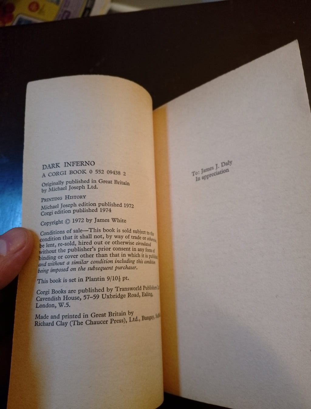 Mid 70s novel by James White, in decent condition with minor wear and a bookstore stamp in the front.
