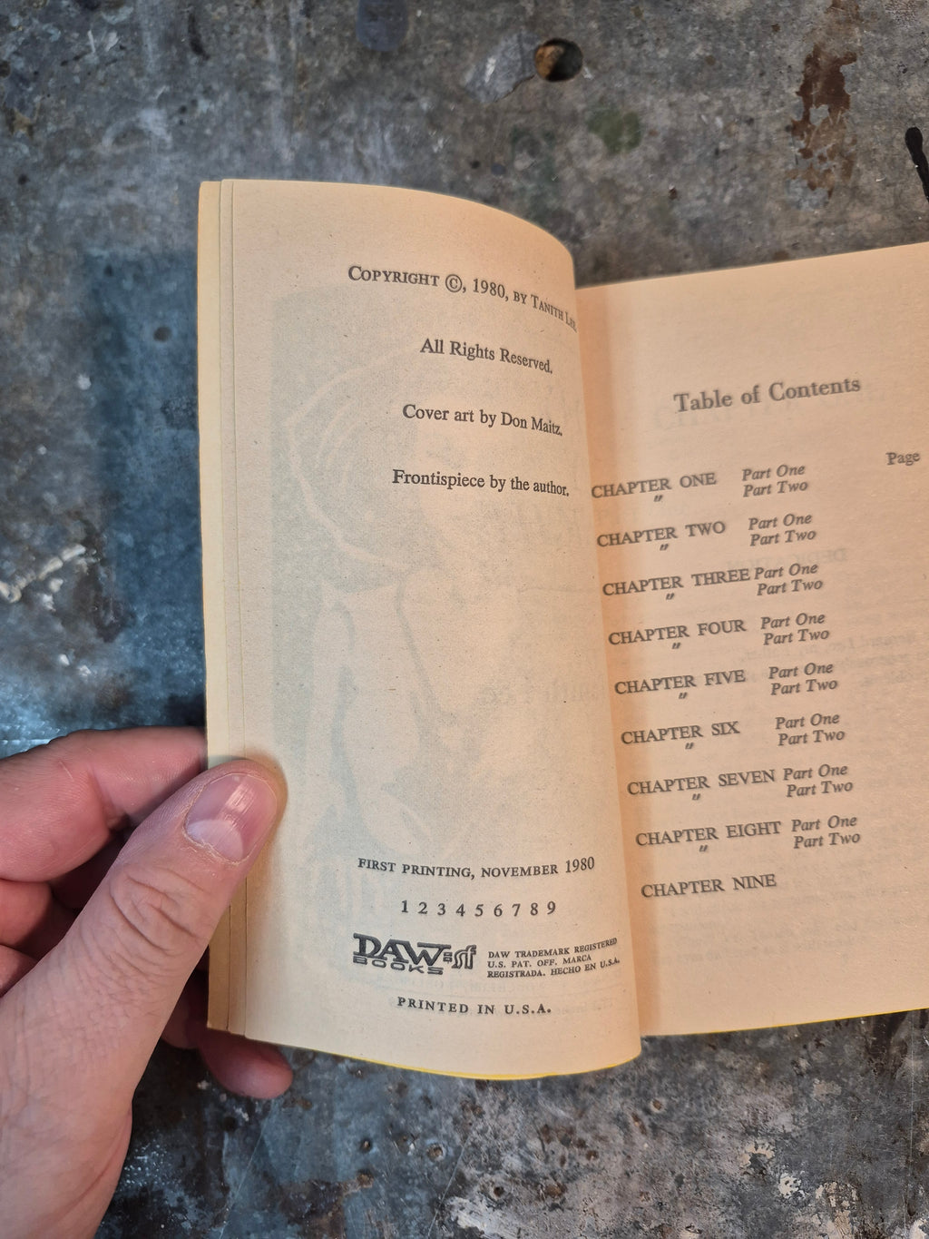 Early 80s novel by Tanith Lee, in great condition with only a few bits of wear around the corners. Page block very clean and bright. Appears unread.
