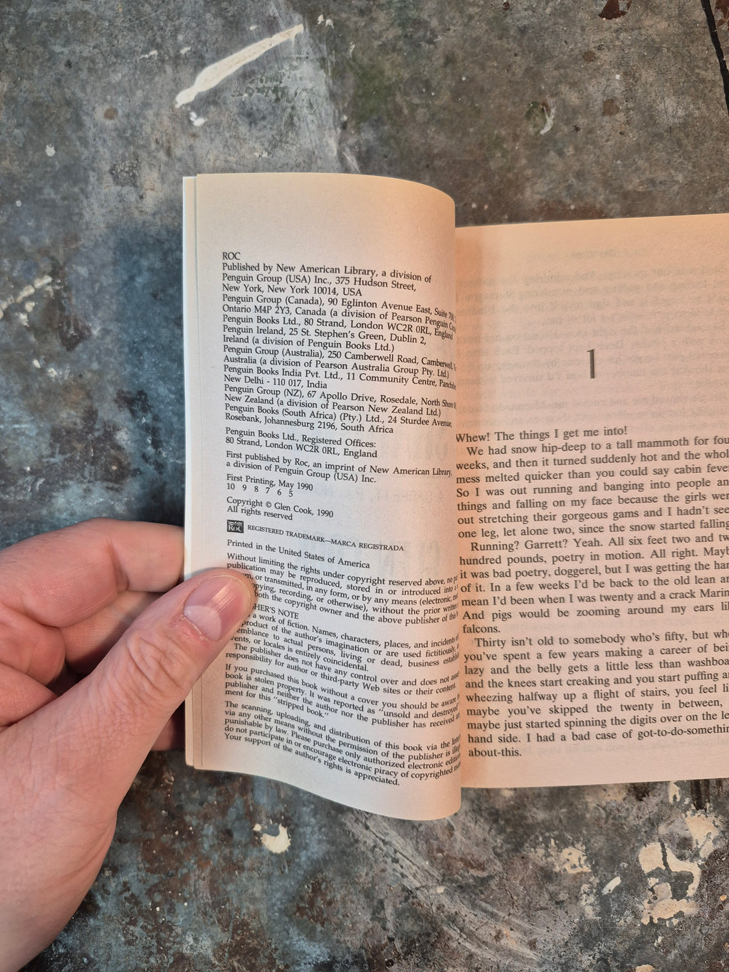 Early 90s printing of the novel by Glen Cook, in great condition with minor wear and tanning.
