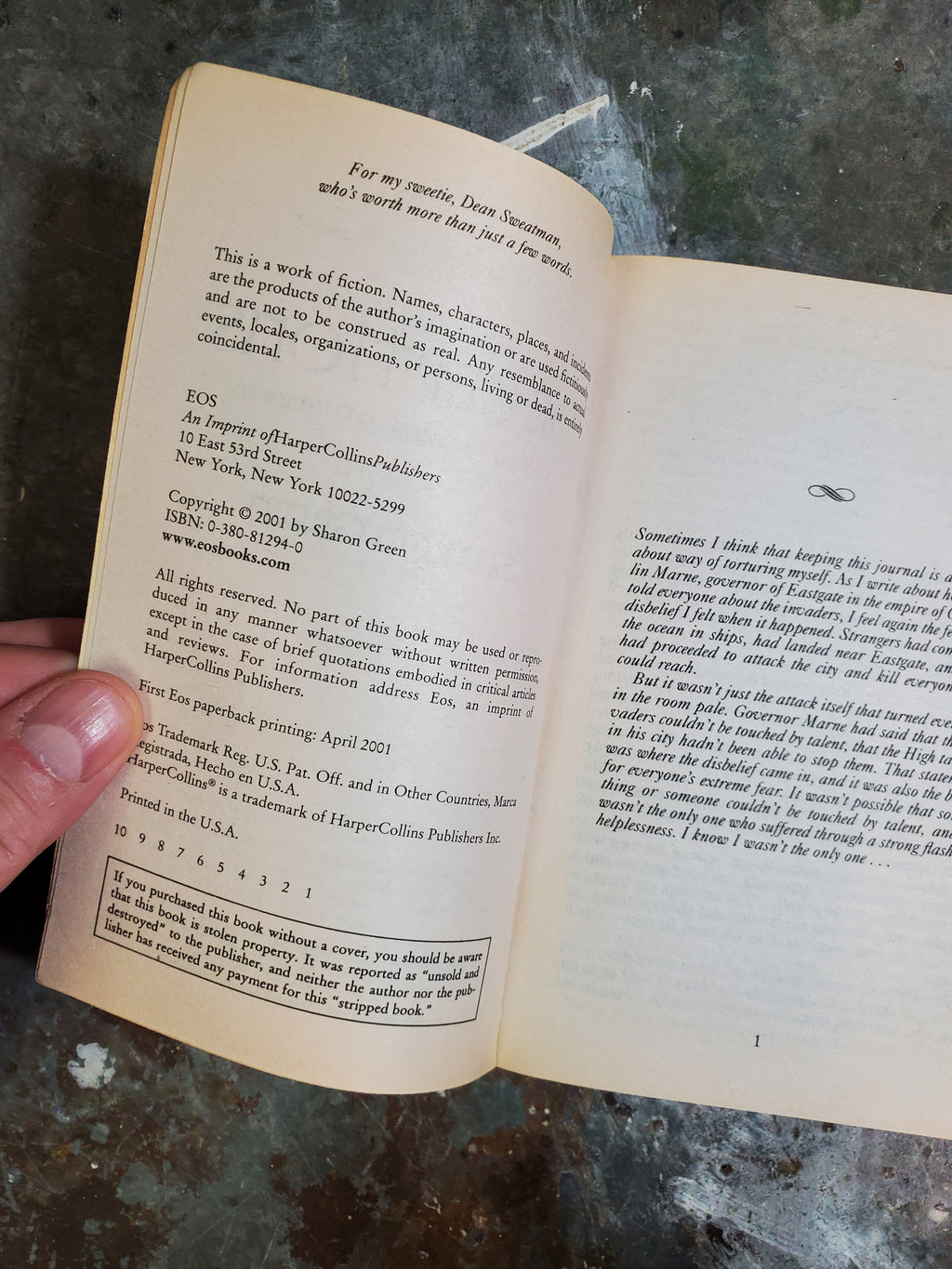 Early 00s Fantasy novel by Sharon Green, in good condition with minor wear and tanning.
