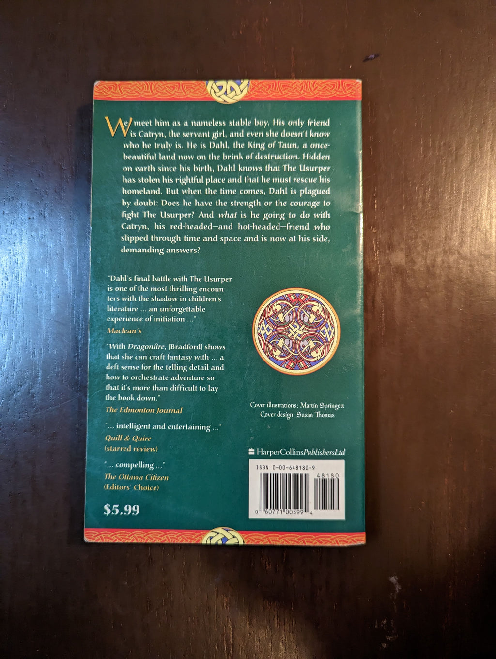 Late 90s novel by Karleen Bradford, in very good condition. No significant wear, very mild tanning. Previous owner name and library stamps in the front. No other library remnants.