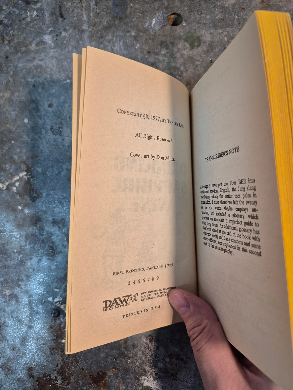 Early 80s novel by Tanith Lee, in great condition with only a few bits of wear around the corners. Page block very clean and bright. Appears unread.