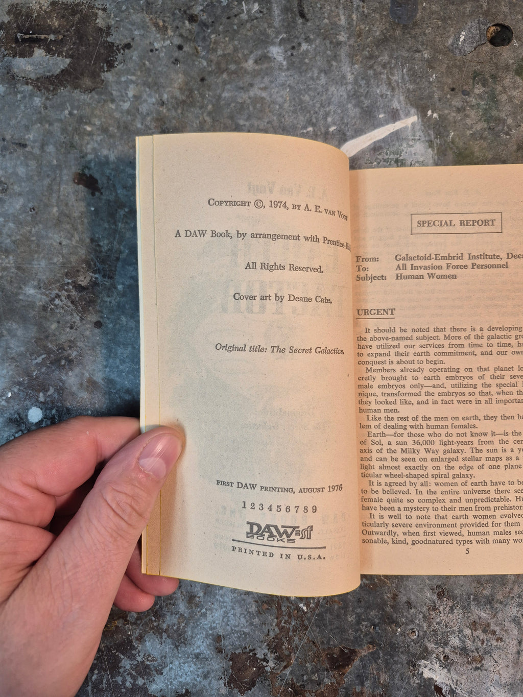 Mid 70s novel by A. E. van Vogt, in good condition with minor wear and tanning.
