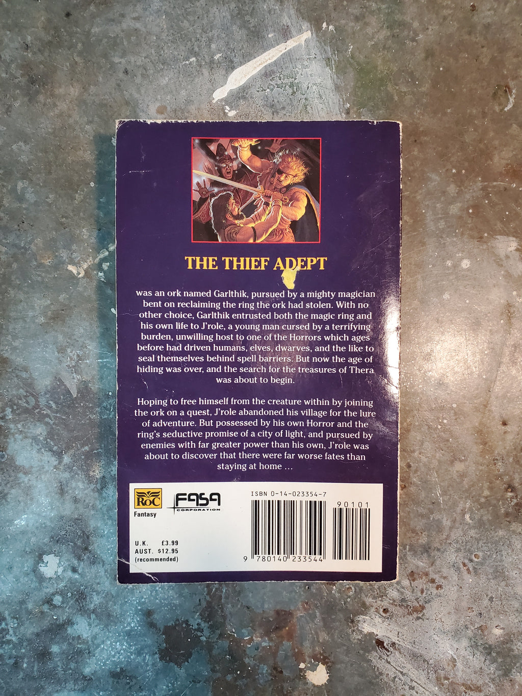 Early 90s Earthdawn novel by Christopher Kubasik, in good condition with minor wear and tanning.