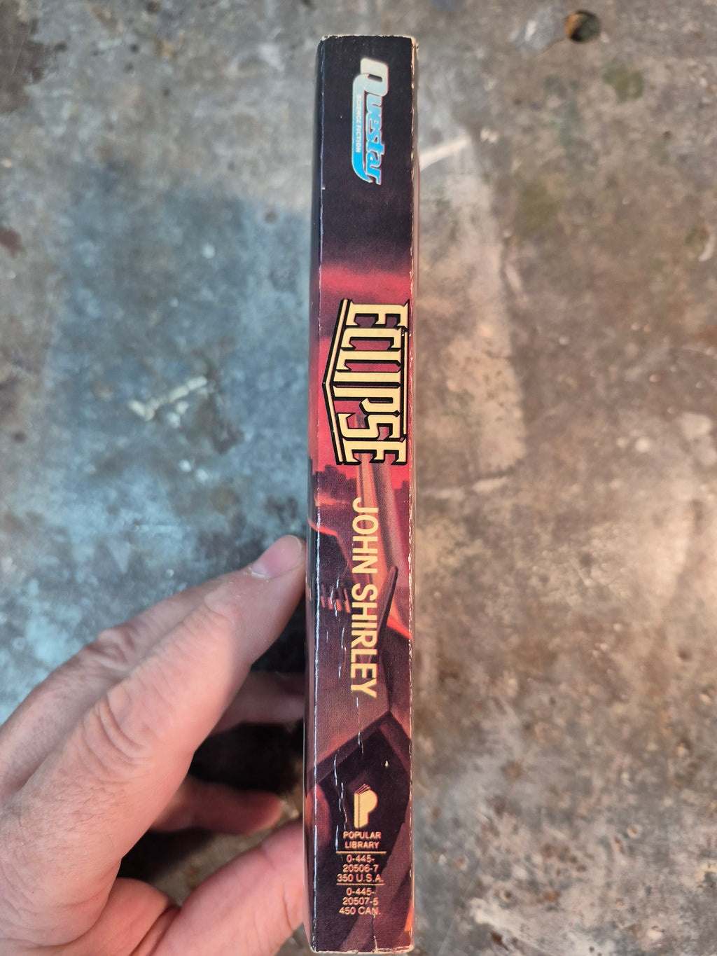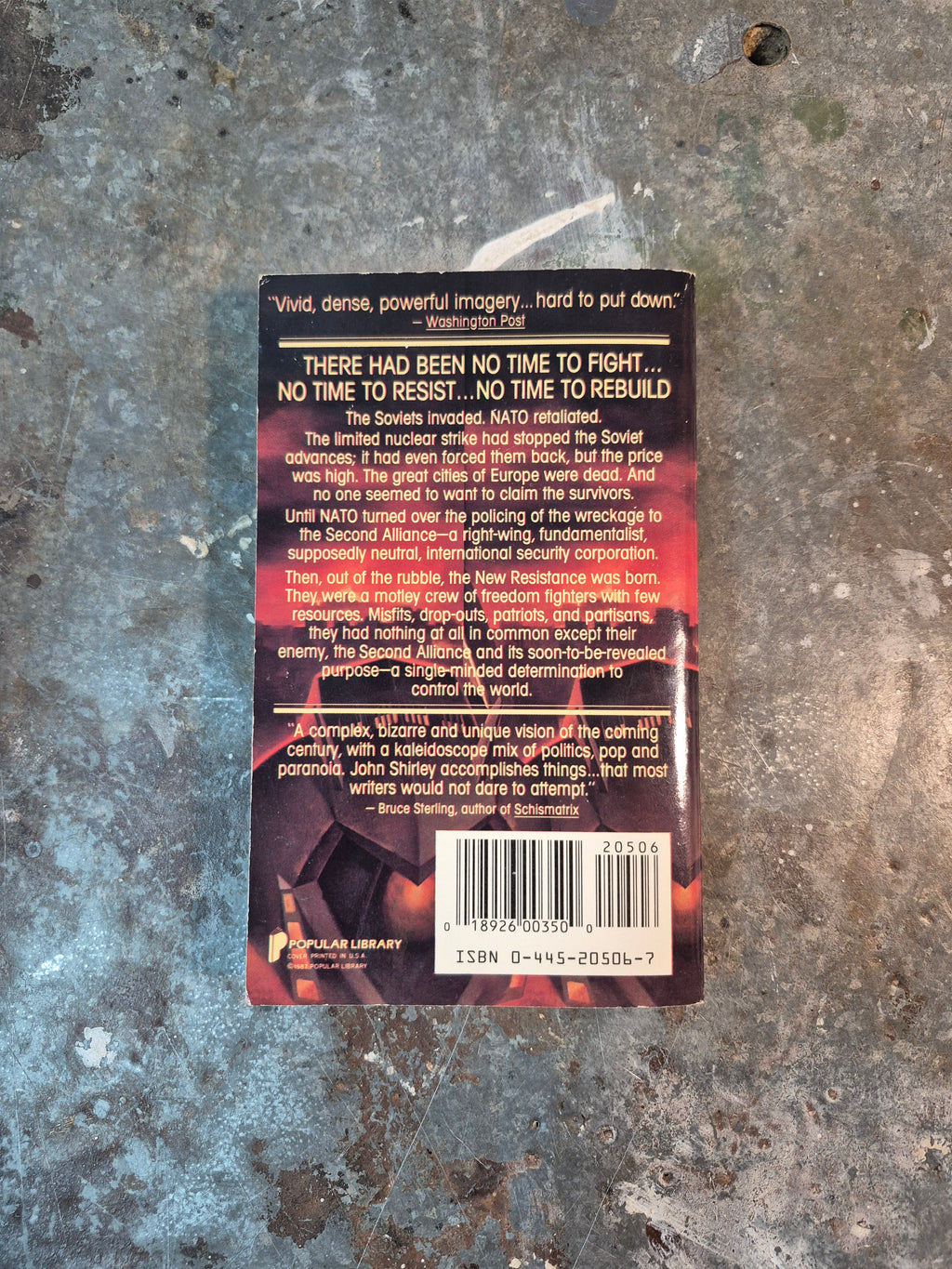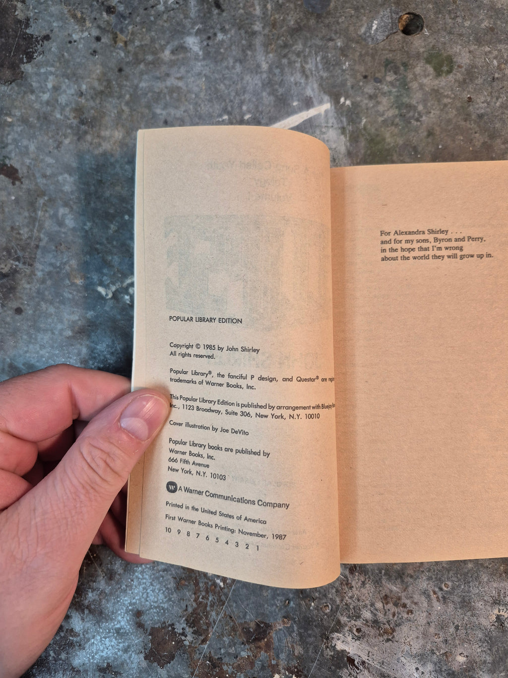 Late 80s Questar novel by John Shirley, in good condition with minor wear and tanning.