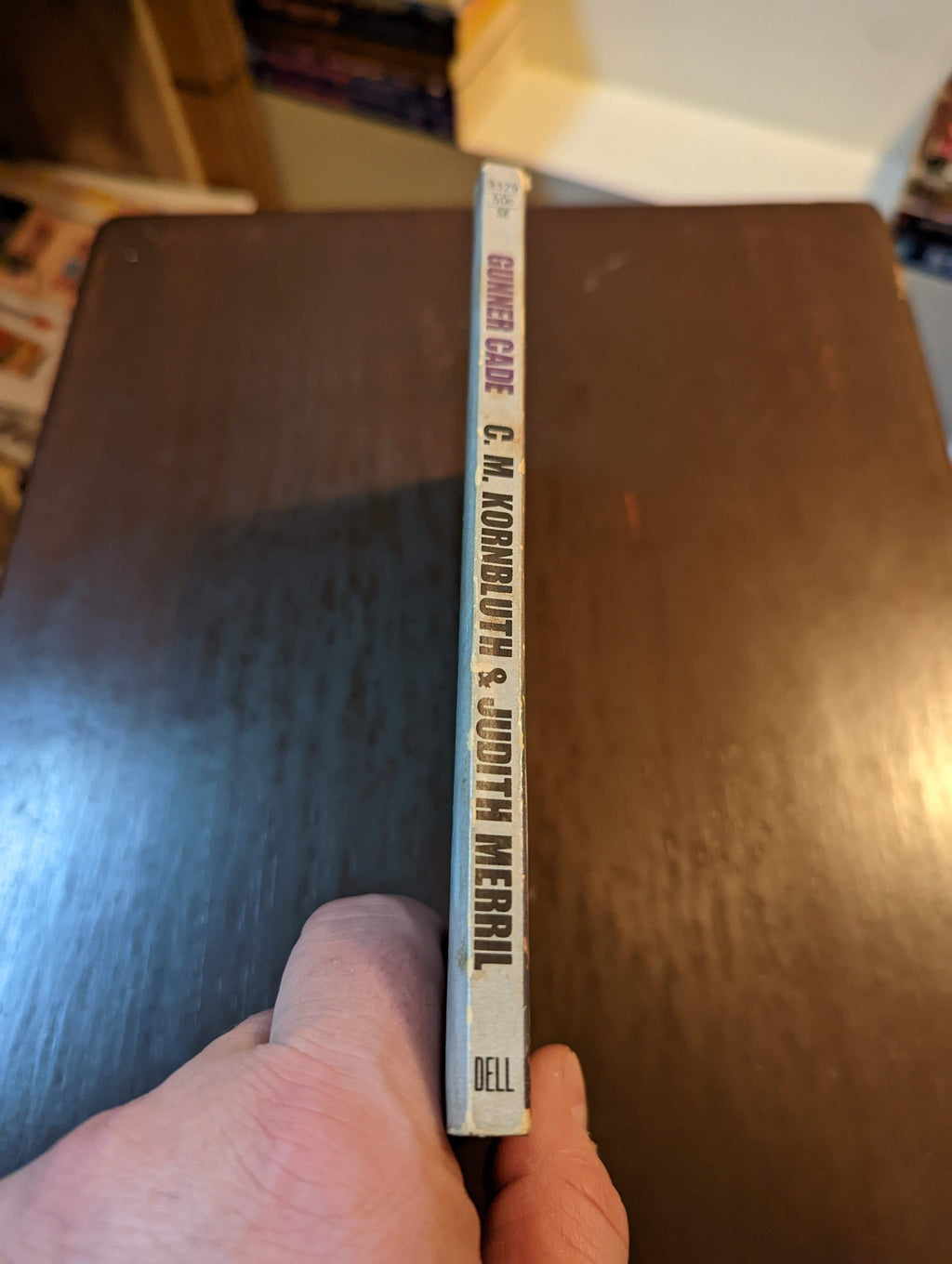 Late 60s novel by C. M. Kornbluth and Judith Merril, mildly worn and tanned but generally square and solid. Bookstore stamp in the front.