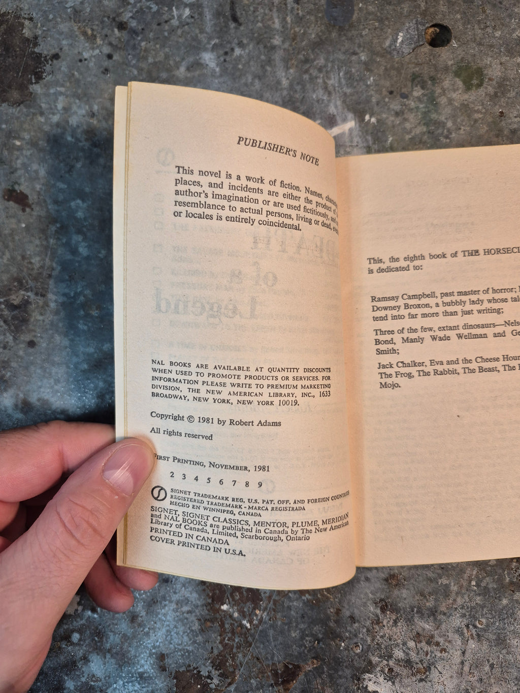 Early 80s Horseclans novel by Robert Adams, in great condition with minor wear and tanning.