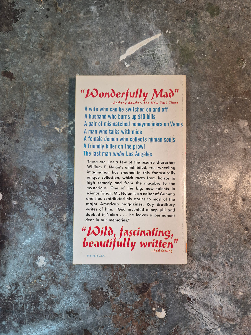 Early 60s printing of the collection by William F. Nolan, in good condition with minor wear and tanning.