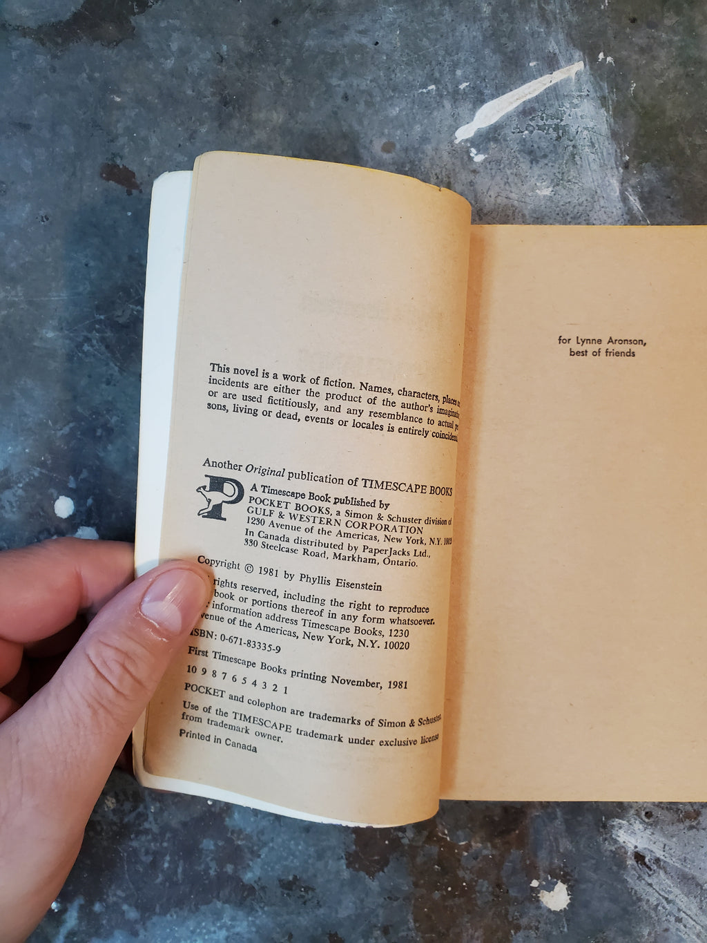 Early 80s novel by Phyllis Eisenstein, in decent condition with mild wear and tanning.