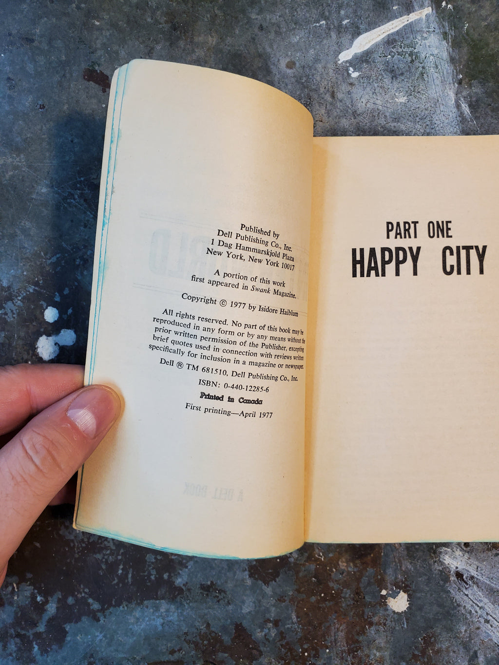 Late 70s novel by Isidore Haiblum, in decent condition with minor wear and tanning. Crease on the cover and name in the front.