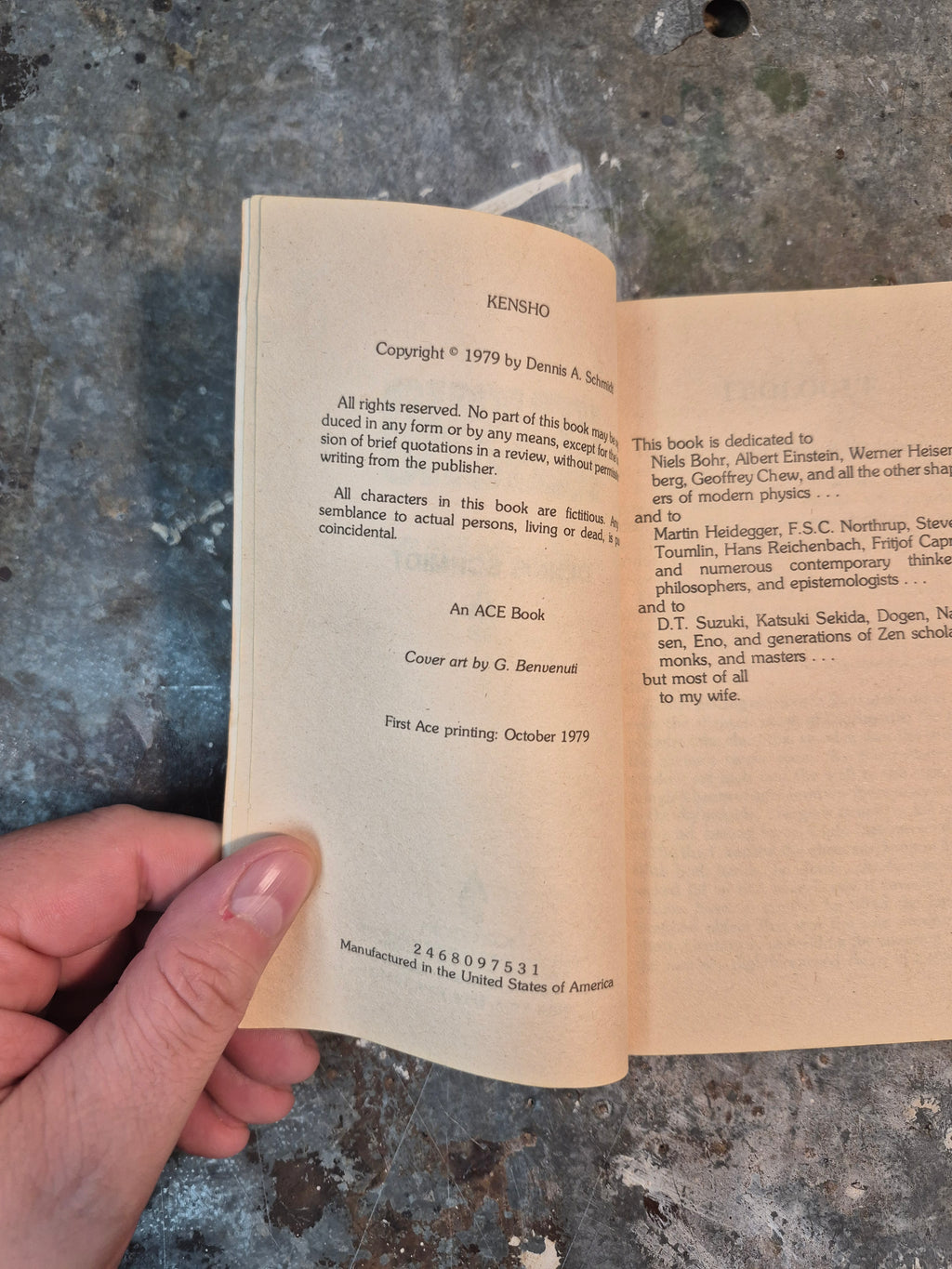 Late 80s novel by Dennis Schmidt, in good condition with minor wear and tanning.