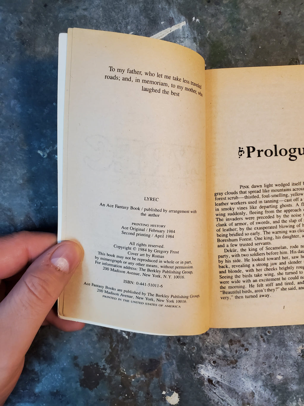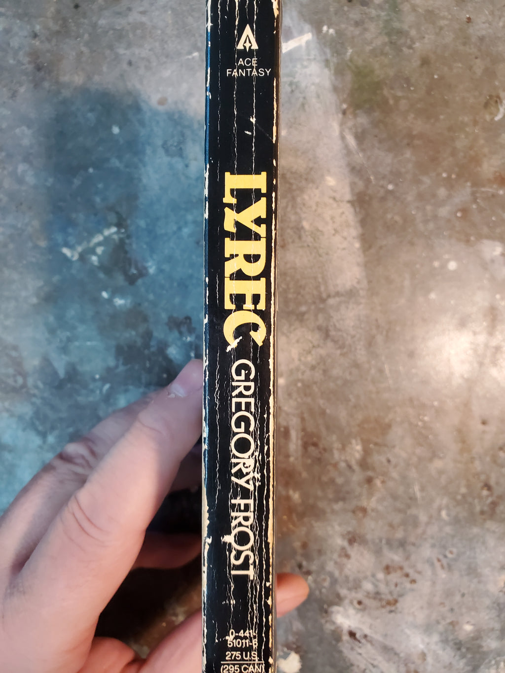 Mid 80s Fantasy novel by Gregory Frost, in great condition with mild wear and tanning. Bookstore stamp and/or written name in the front.