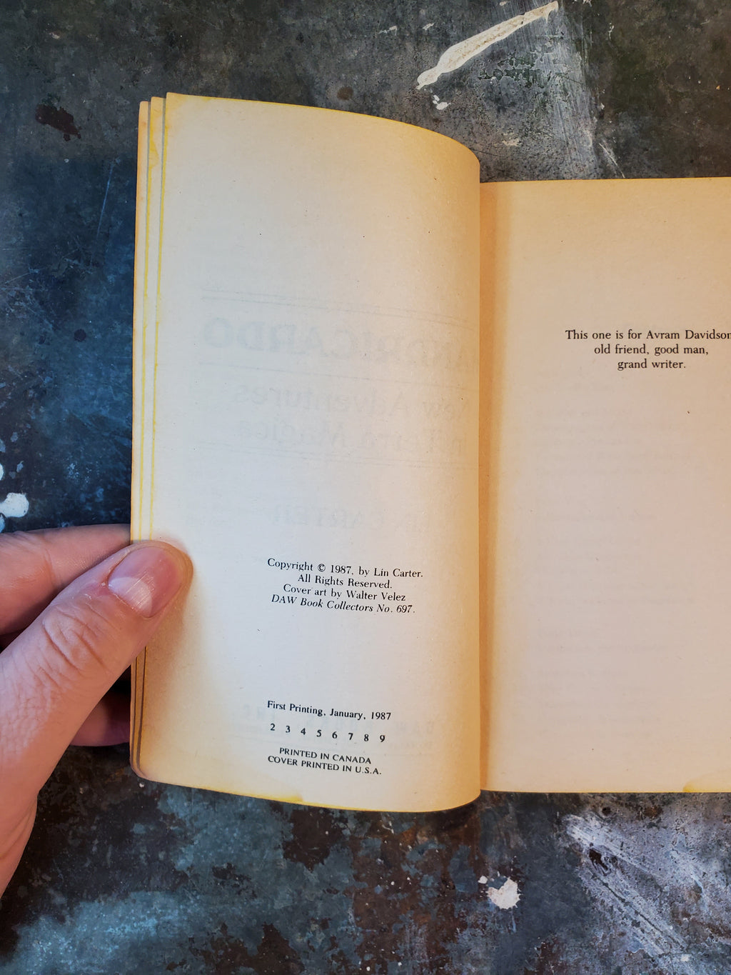 Late 80s novel by Lin Carter, in good condition with mild wear and tanning. .