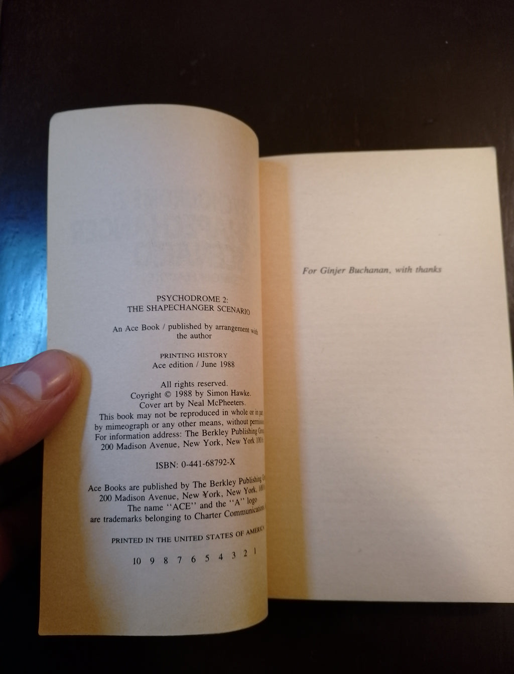 Late 80s Psychodrome novel by Simon Hawke in decent condition with minor wear.