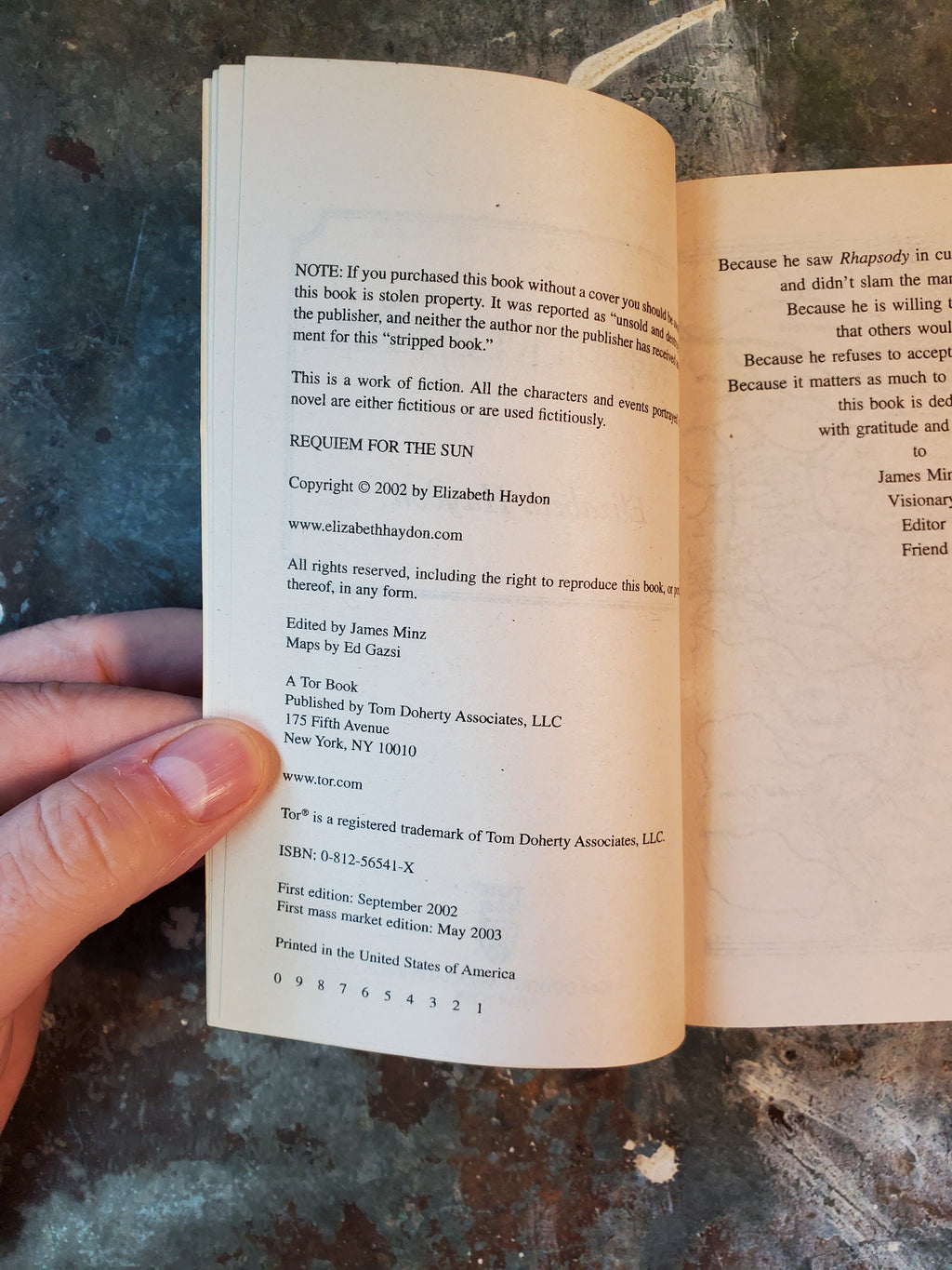Early 00s novel by Elizabeth Haydon, in good condition with mild wear and tanning.