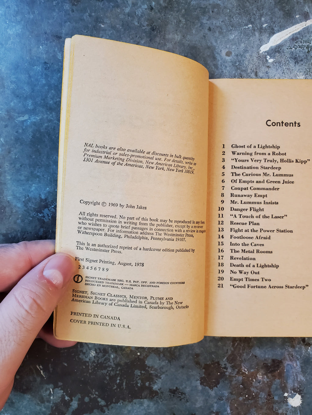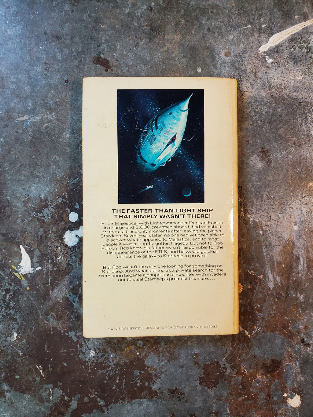 Late 70s novel by John Jakes, in decent condition with minor wear and tanning. Bookstore stamp and name in the front.