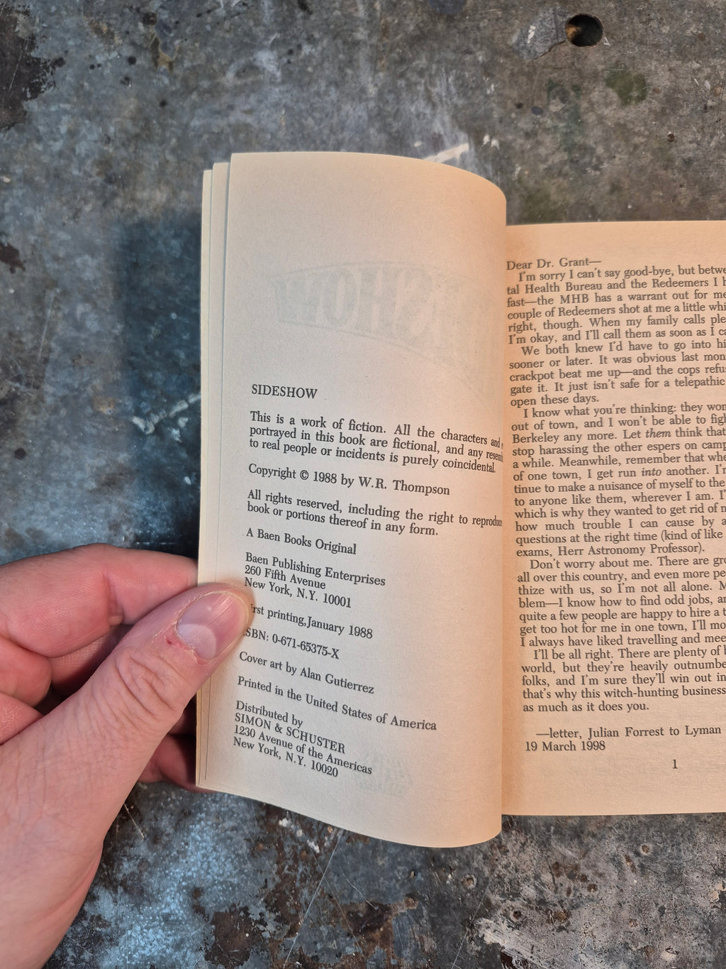Late 80s novel by W. R. Thompson, in good condition with minor wear and tanning.