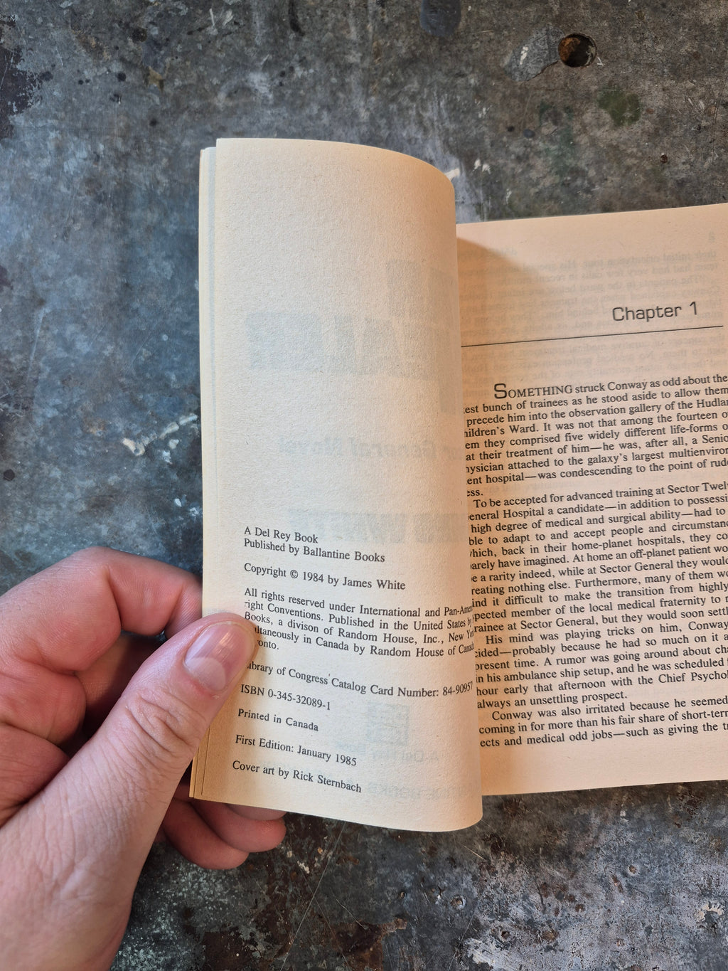 Early 80s edition of the novel by James White, in great condition with minor wear and tanning.